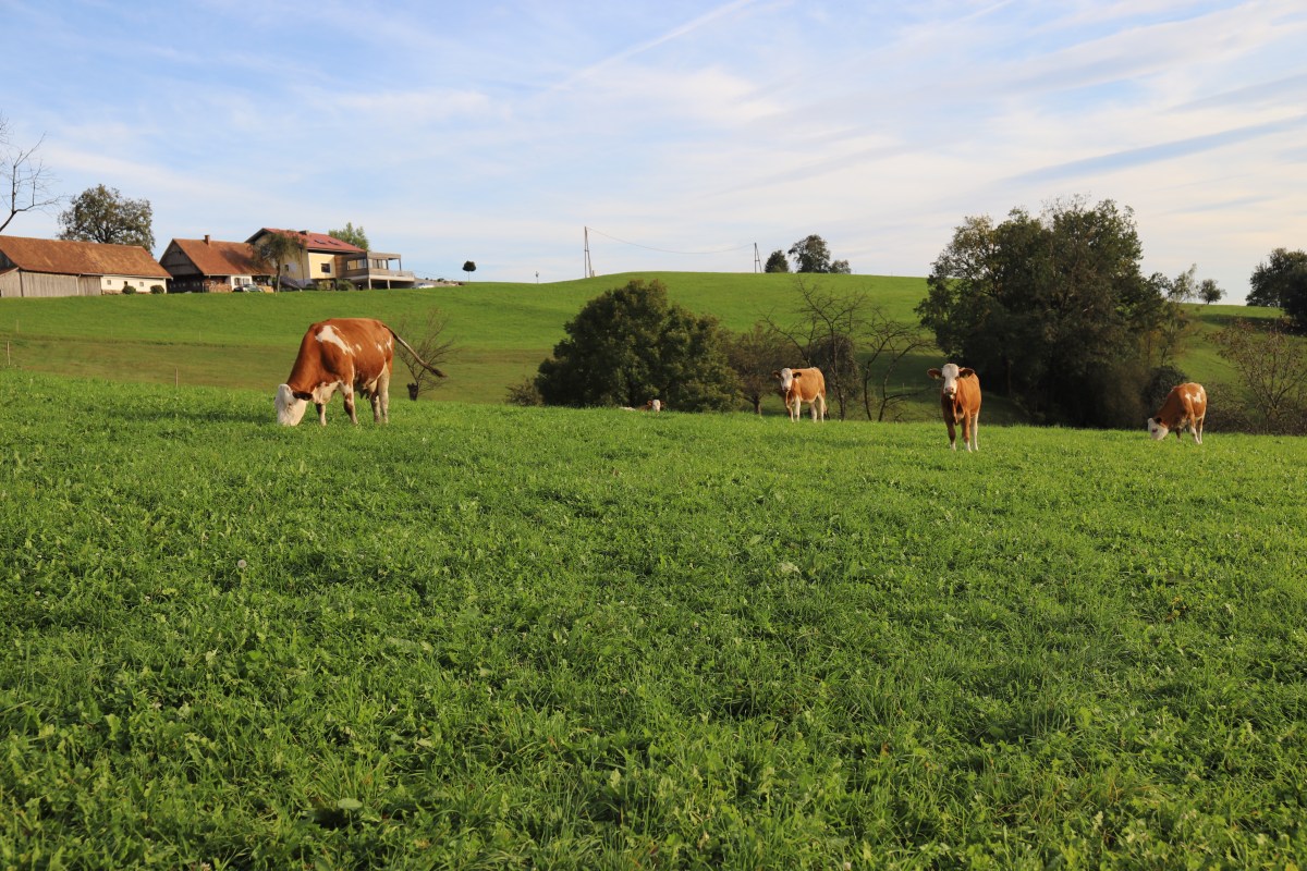 Jetzt haben wir euch einiges über die Vorzüge der Fütterung der Kuh mit Gras erzählt. Diese Vorzüge versuchen wir bei uns am Hof einzuhalten. Fütterung mit Gras. Und wann immer es möglich ist, auf der Weide. Dazu möglichst wenig Getreide als Kraftfutter. Dieses ist nämlich als direktes Lebensmittel für den Menschen wesentlich effizienter eingesetzt. Leider werden diese Prinzipien vielfach umgedreht. Und die Kuh wird sprichwörtlich „wie ein Schwein“ gefüttert. Mit Getreideanteilen bis zu 50 %. Wodurch leider viele Vorzüge der Wiederkäuer verloren gehen. Und die Tierhaltung in ein schlechtes Licht gerückt wird.