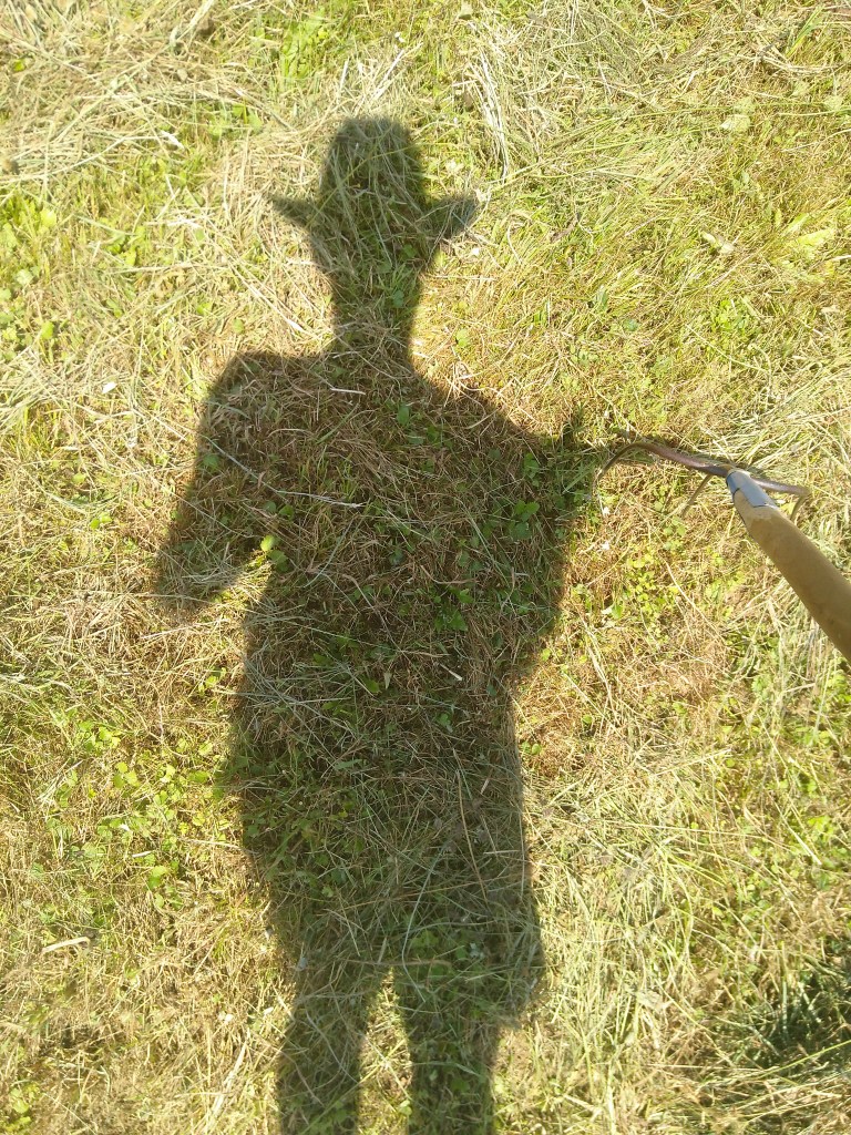 Ein Schatten-Selfie von Martin bei der Heuarbeit.